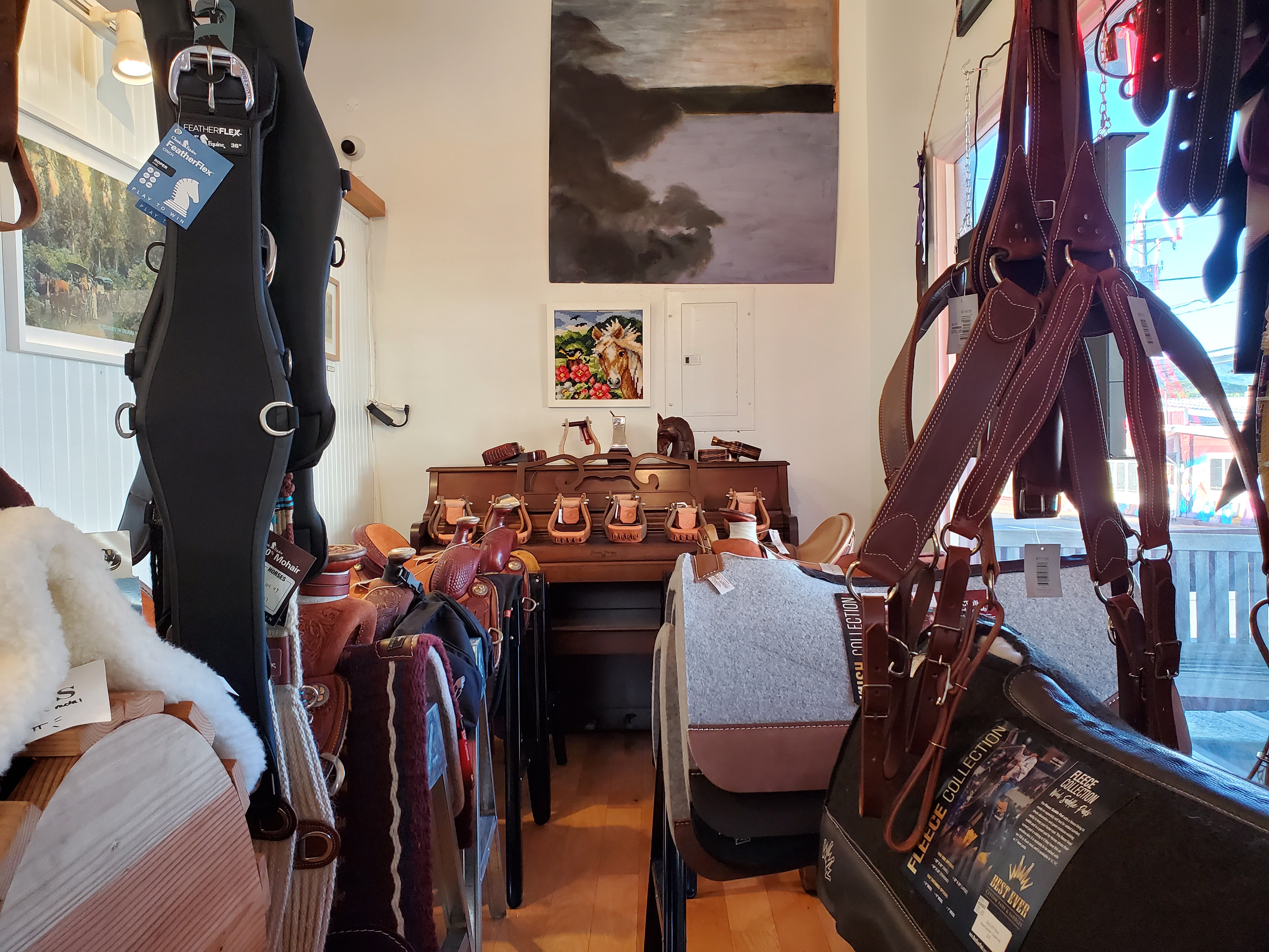 bits, bridles, ropes, reins, halters, stirrups, saddles, shampoos, sprays, leather care
